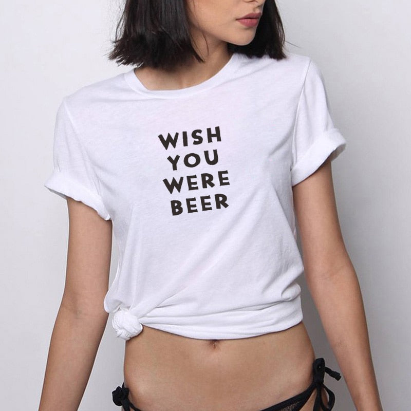 ONSEME Wish You Were Beer Letters streetwear t shirt women clothes aesthetic tumblr tee shirt femme Summer top Female Q-574