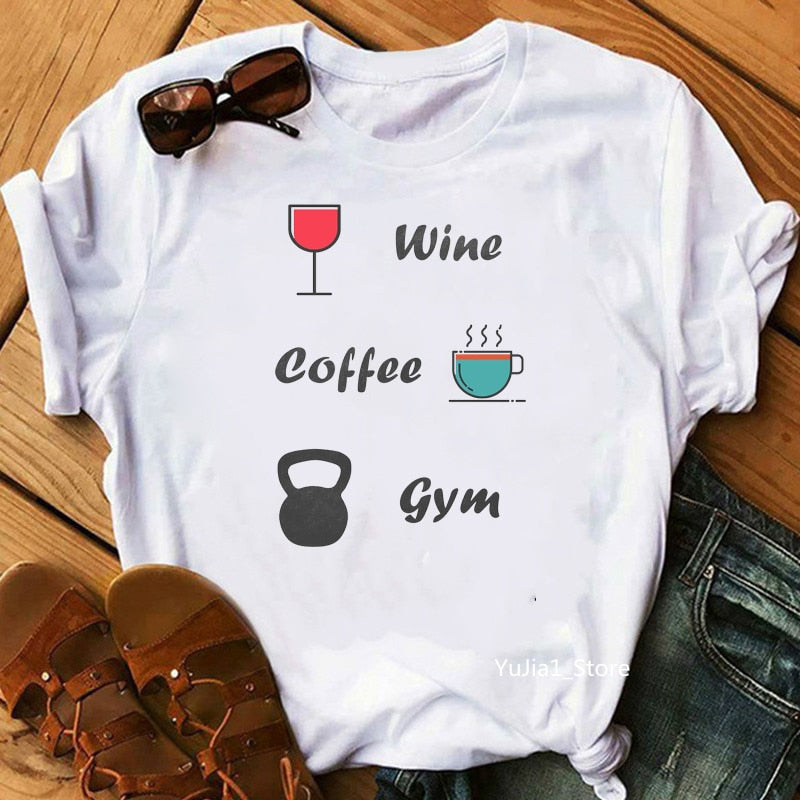 Newest funny wine coffee gym/ dogs/ cats/ pizza print 90s graphic tees shirt femme white t shirt streetwear cute tumblr clothes