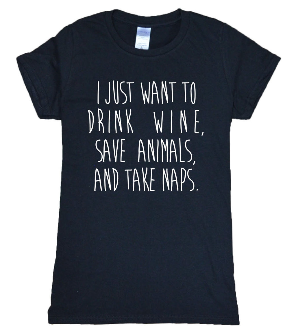 New Arrival 2019 Summer I Just Want To Drink Wine, Save Animals, And Take Naps letters print funny t shirt Women slim fit tops