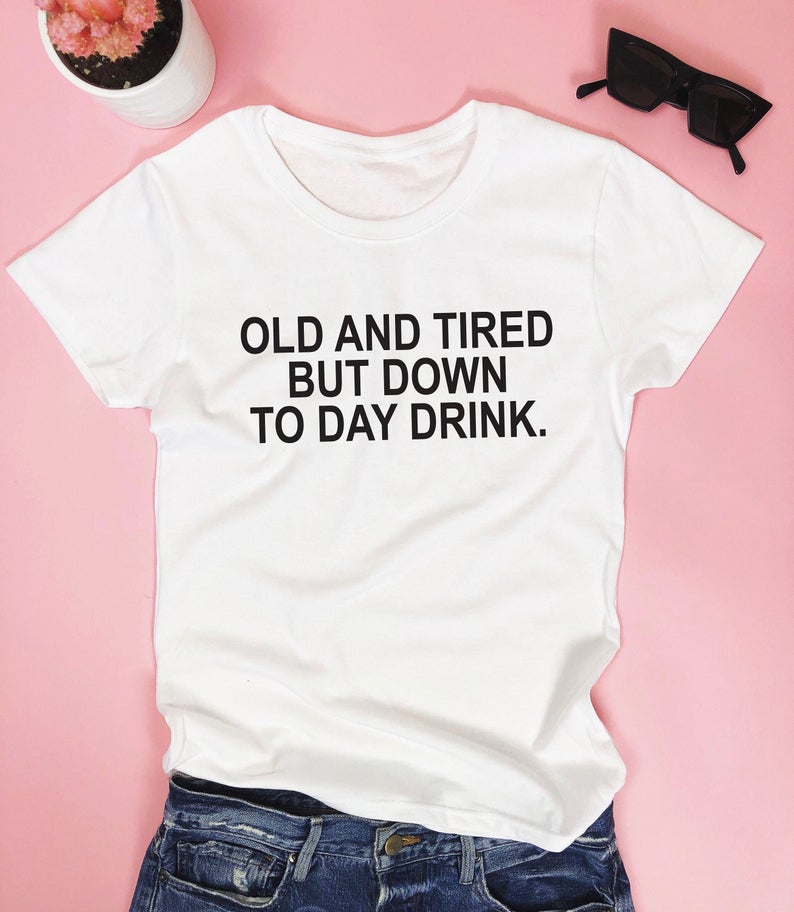 Old and tired but down to day drink Women tshirt Cotton Casual Funny t shirt Lady Yong Girl Top Tee Drop Ship S-518
