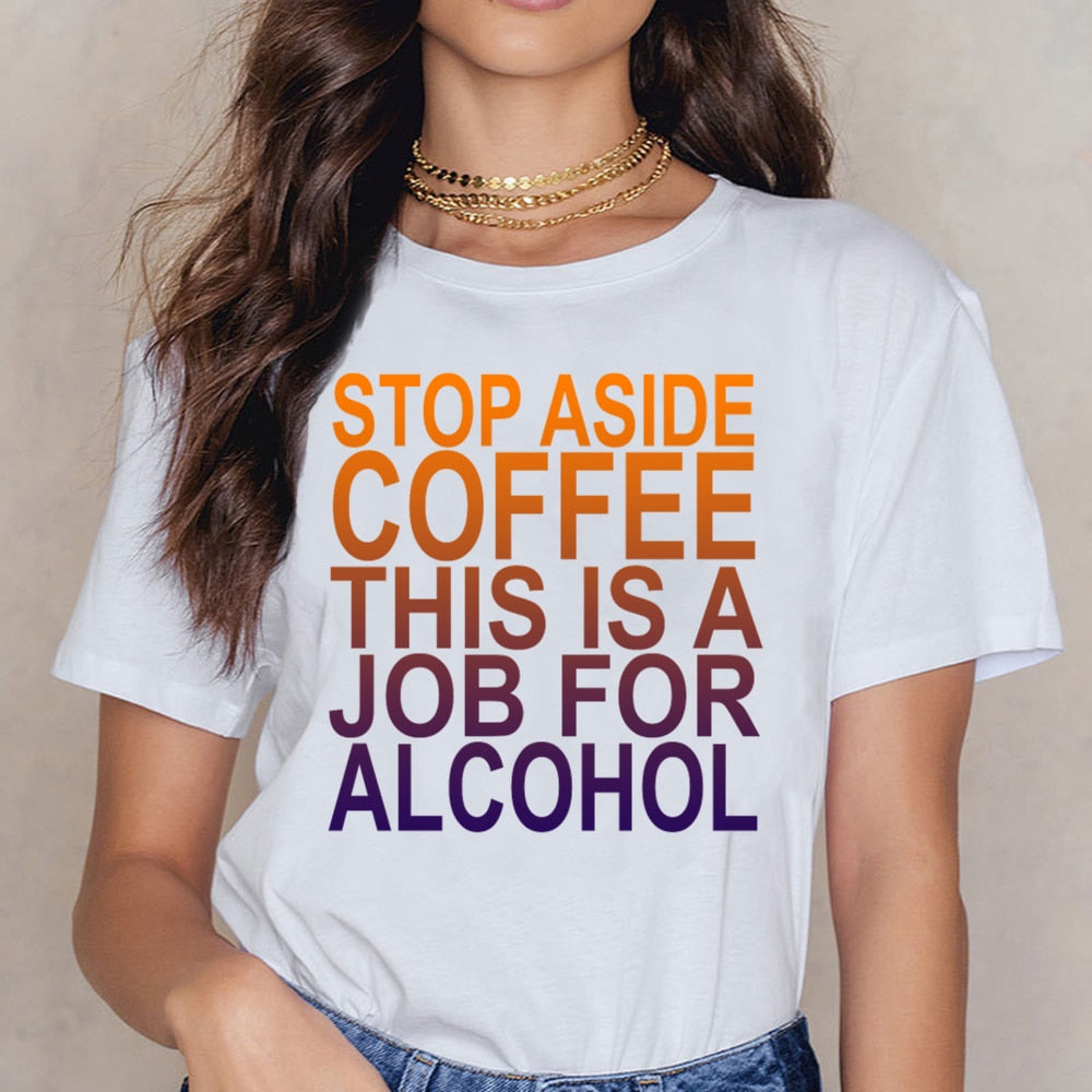 Tops T Shirt Women Coffee Alcohol Beer Funny Fashion White Cotton Female Shirt