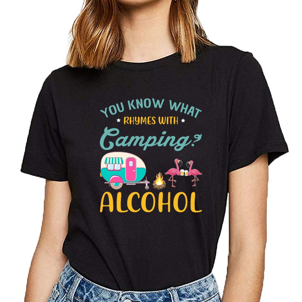Tops T Shirt Women flamingos and camping alcohol Sexy Harajuku Custom Female Tshirt