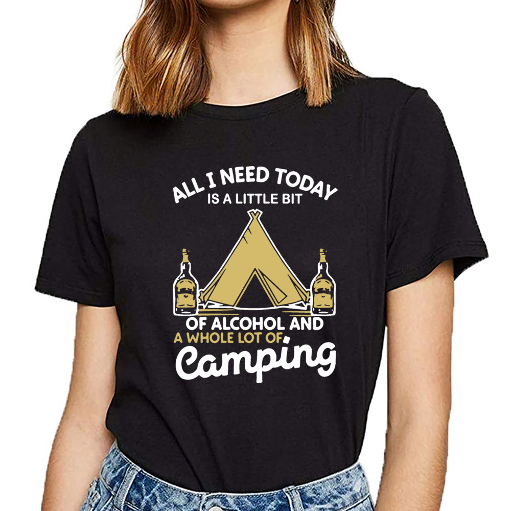 Tops T Shirt Women camping beer drinking tent hiking alcohol gift Hip Hop Vintage Custom Female Tshirt
