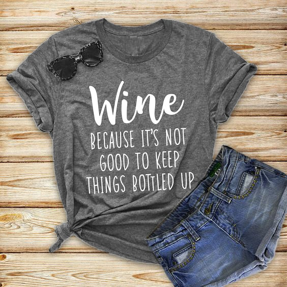 Wine Because It'sNot Good To Keep Things Bottled Up unisex women fashion slogan grunge aesthetic t shirt quote tees tops- K269