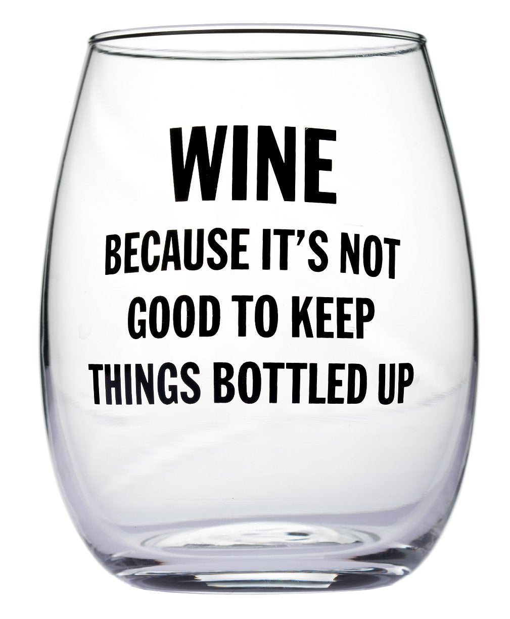 Wine Because It's Not Good To Keep Things Bottled Up Stemless Wine Glass
